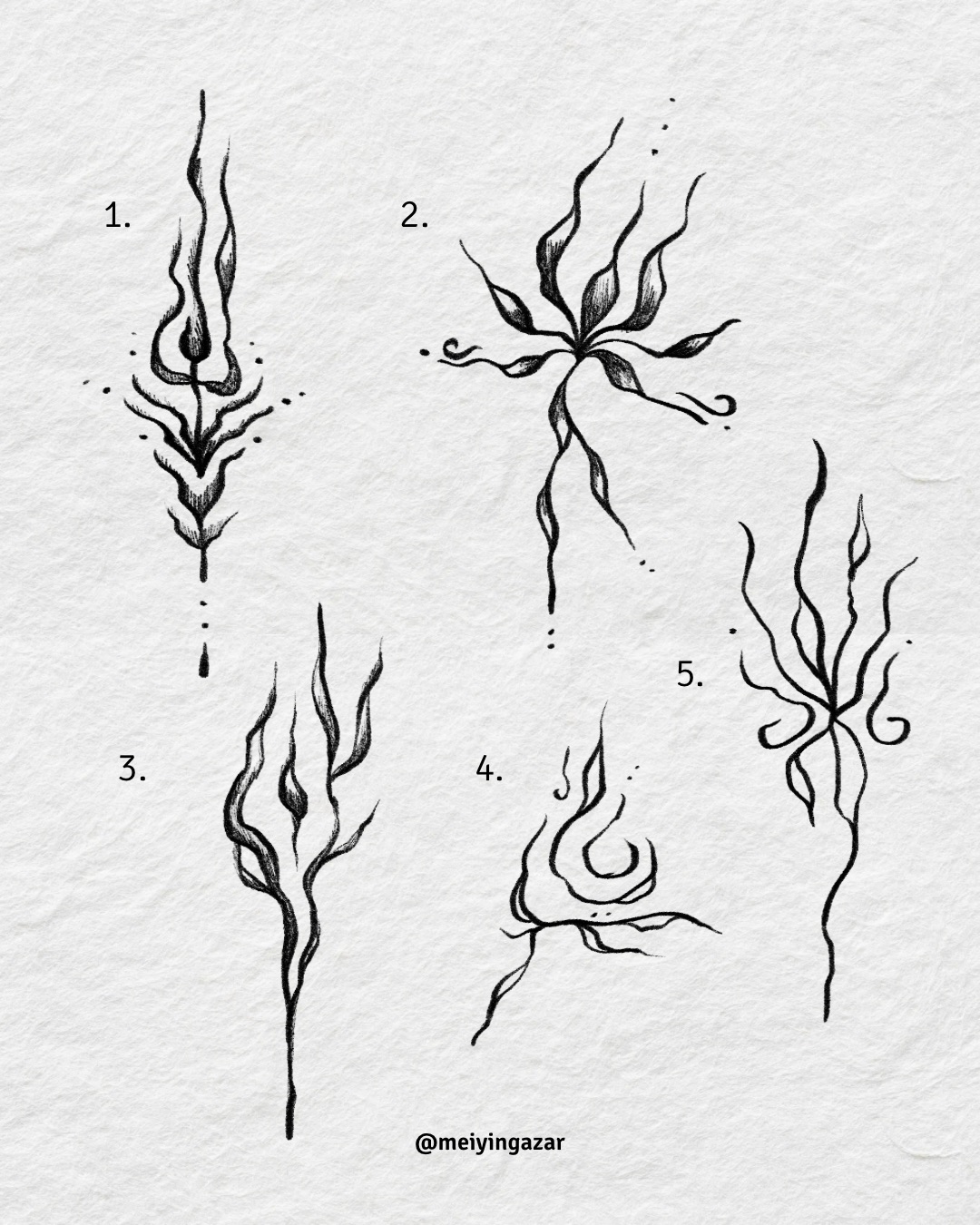 Fire Dancers is een flash tattoo serie, geïnspireerd door het vonkje dat me motivatie gaf: een vuurwezentje aan mijn zijde.