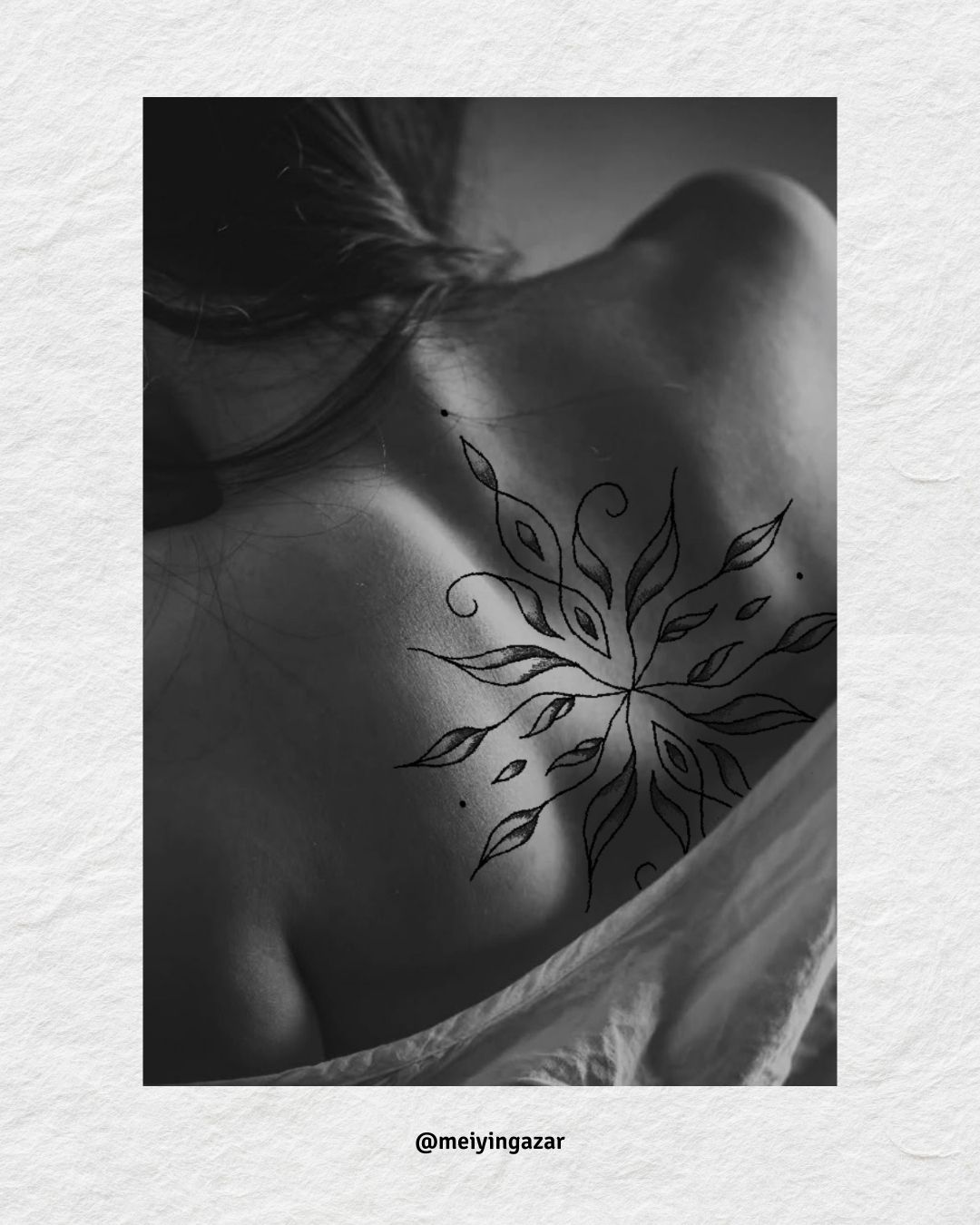 Ontwerp 1 is bedoeld om intuïtief en organisch de lijnen van het lichaam te laten volgen. Dit ontwerp kan meerdere malen worden gekozen, al zal geen enkele freehand marking hetzelfde zijn.